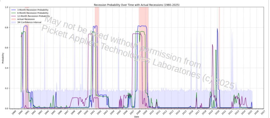 - 3-Month Horizon: The chance of a recession is less than 1% (specifically, 0.86%). This indicates a very stable economic environment in the short term.